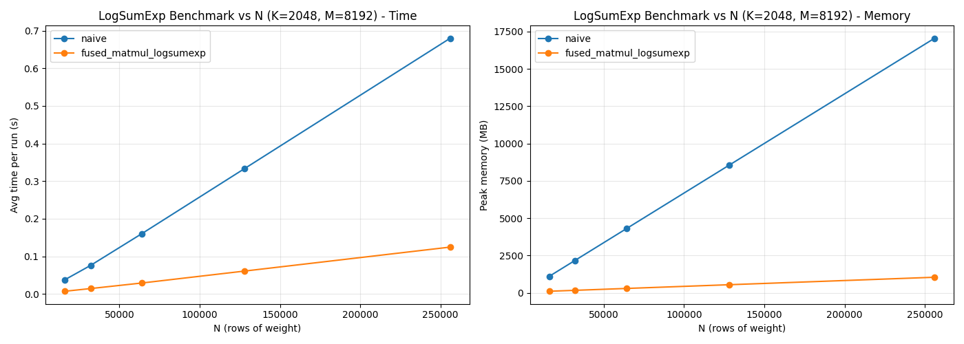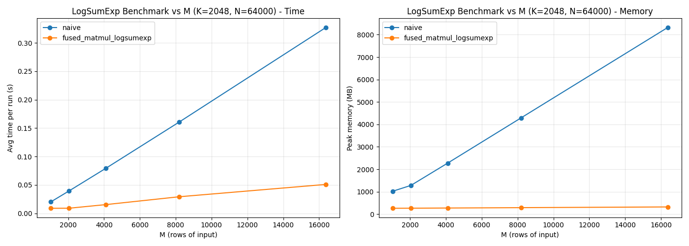 The full code is available at pablomiralles22/fused-matmul-logsumexp, and you will find a good description and instructions on how to use it on the README file.